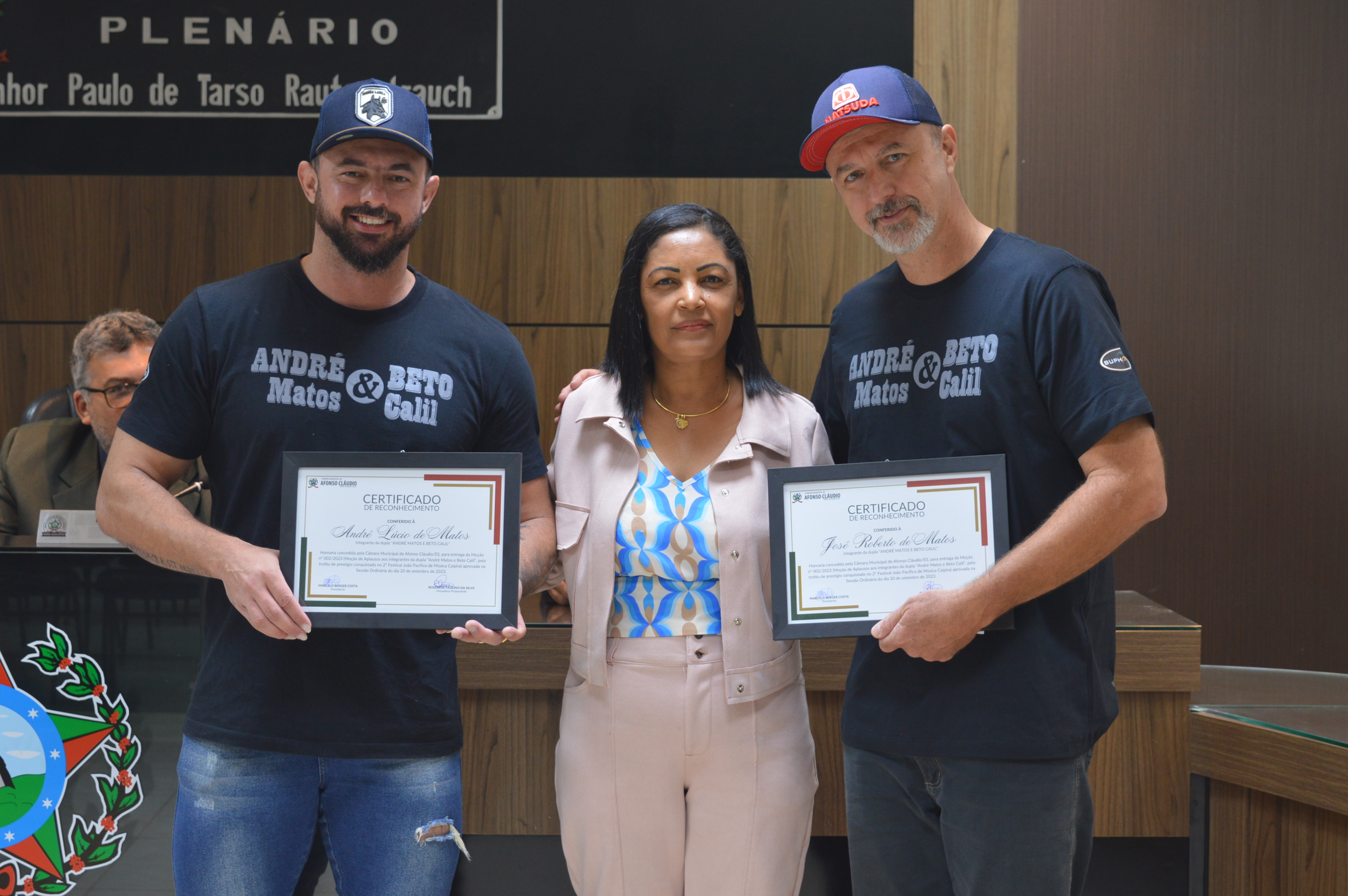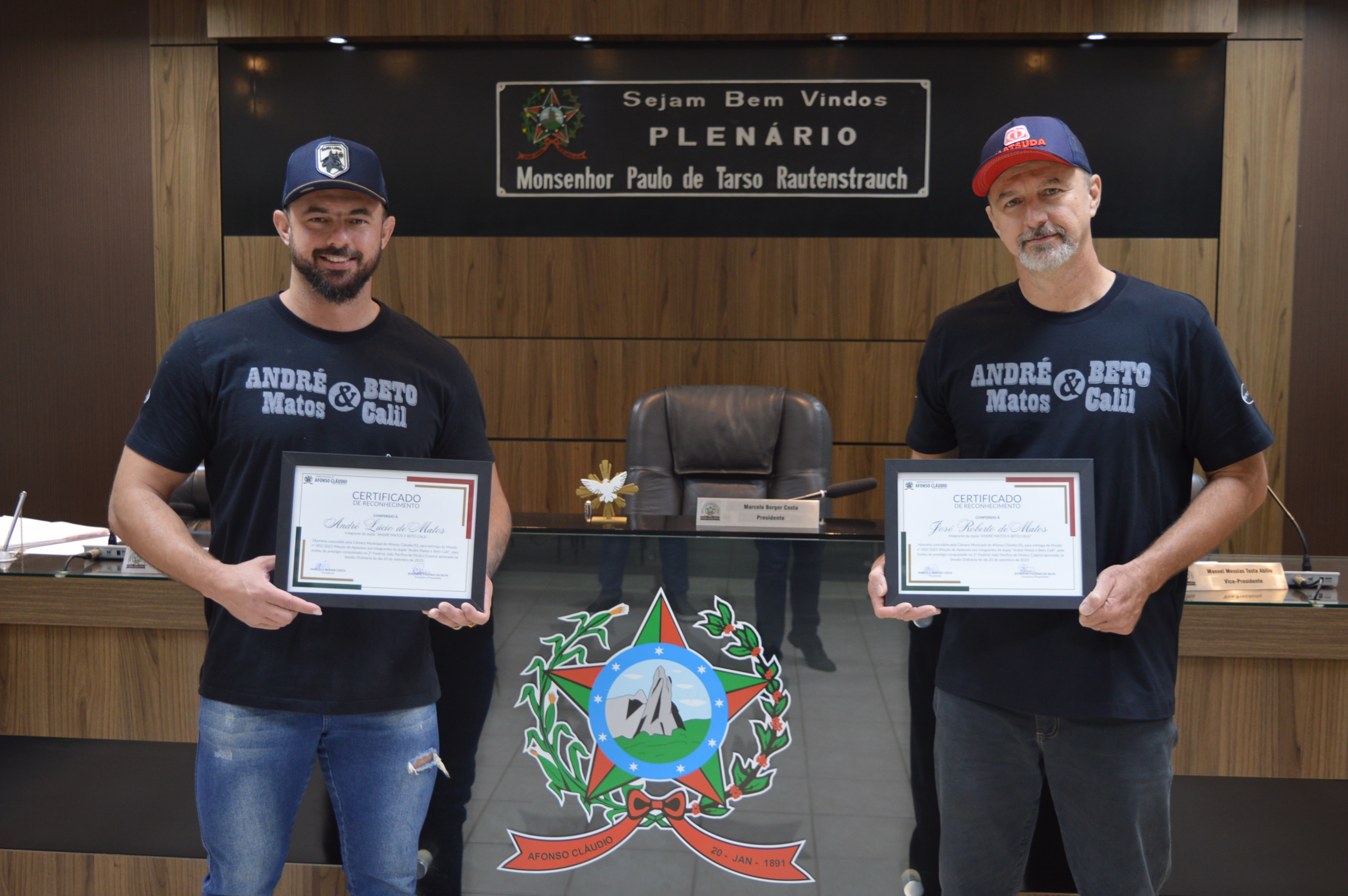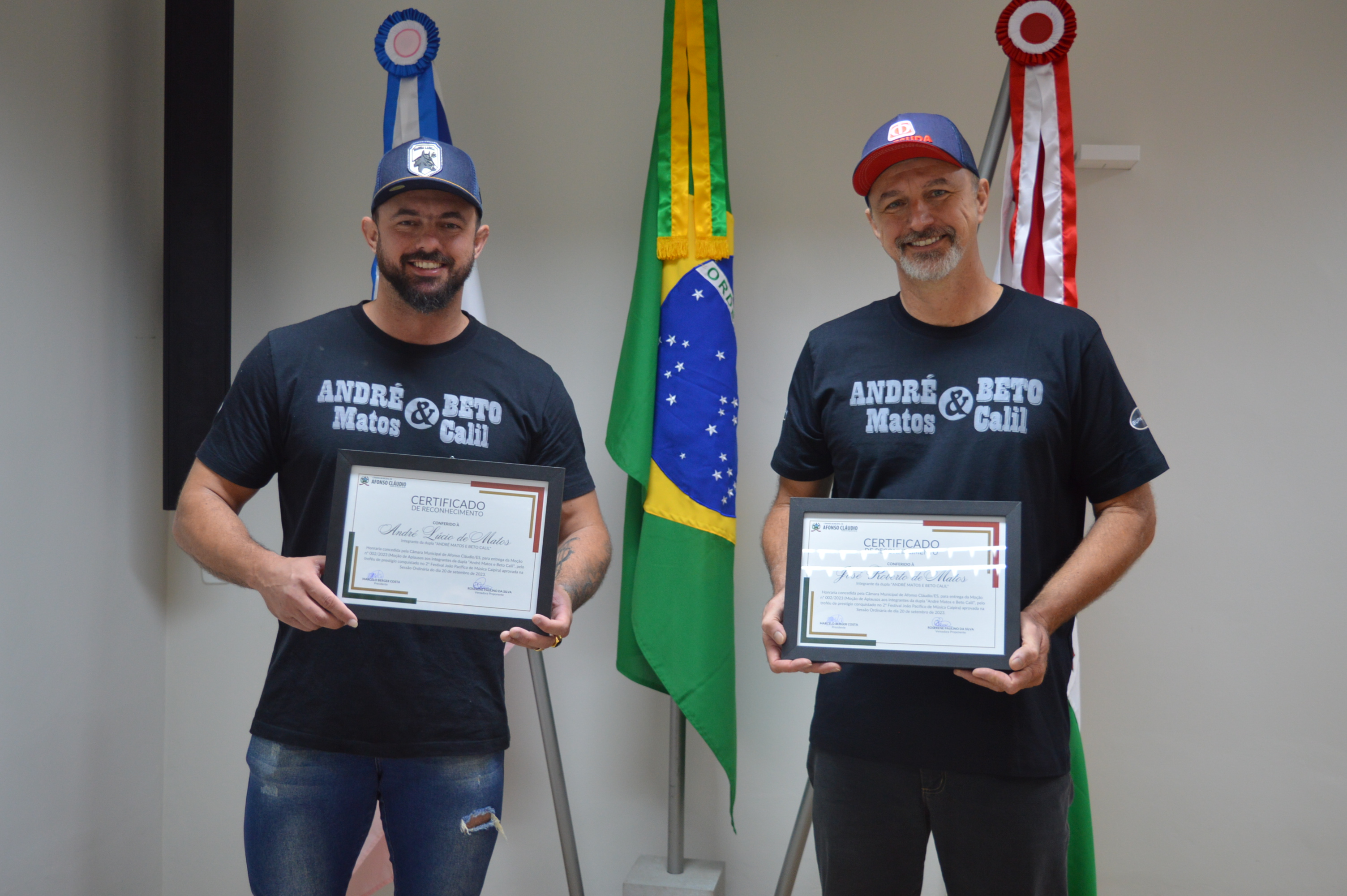 Entrega da Moção de Aplausos nº 002/2023 à dupla André Matos e Beto Calil em 10/10/2023