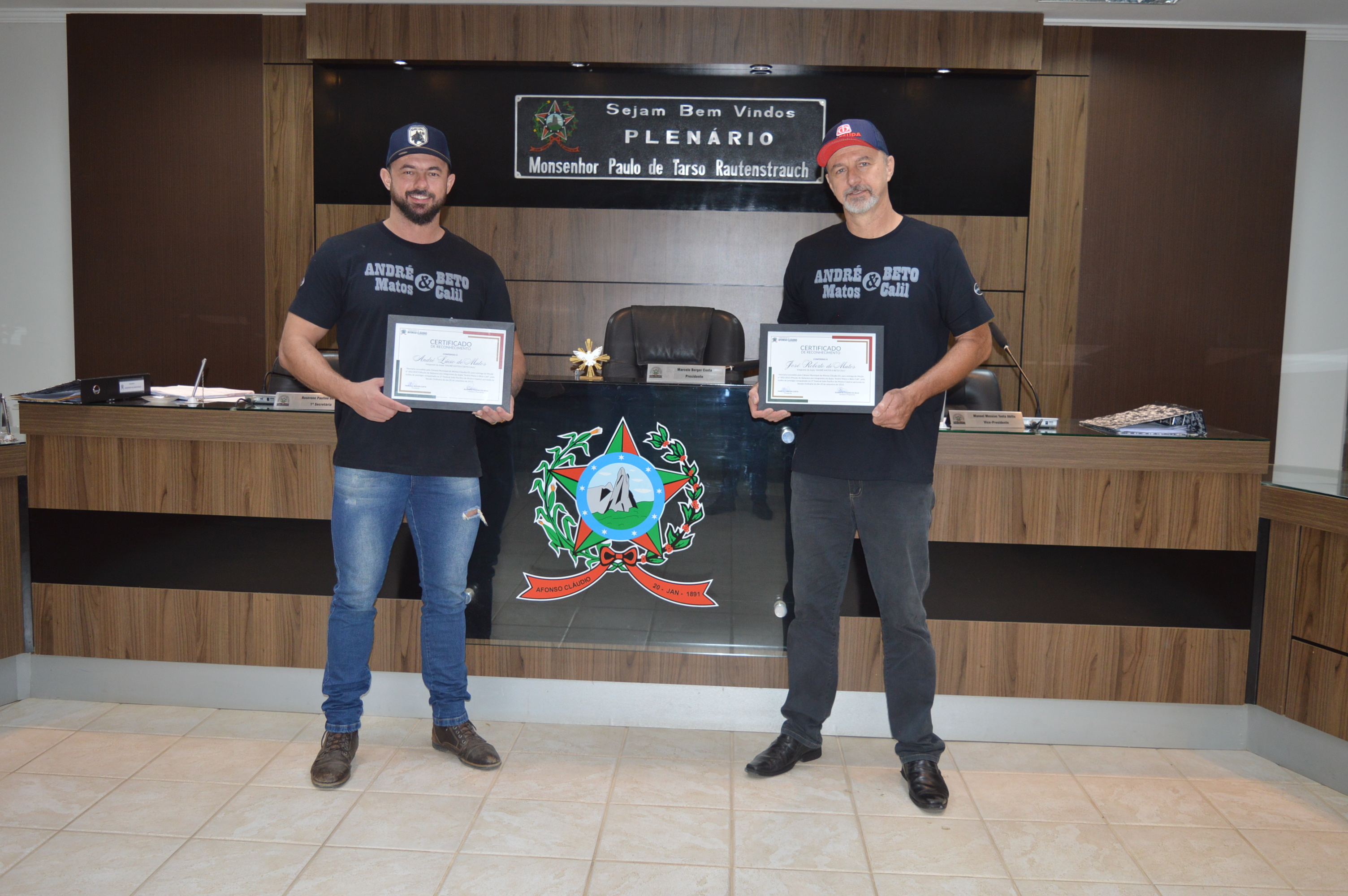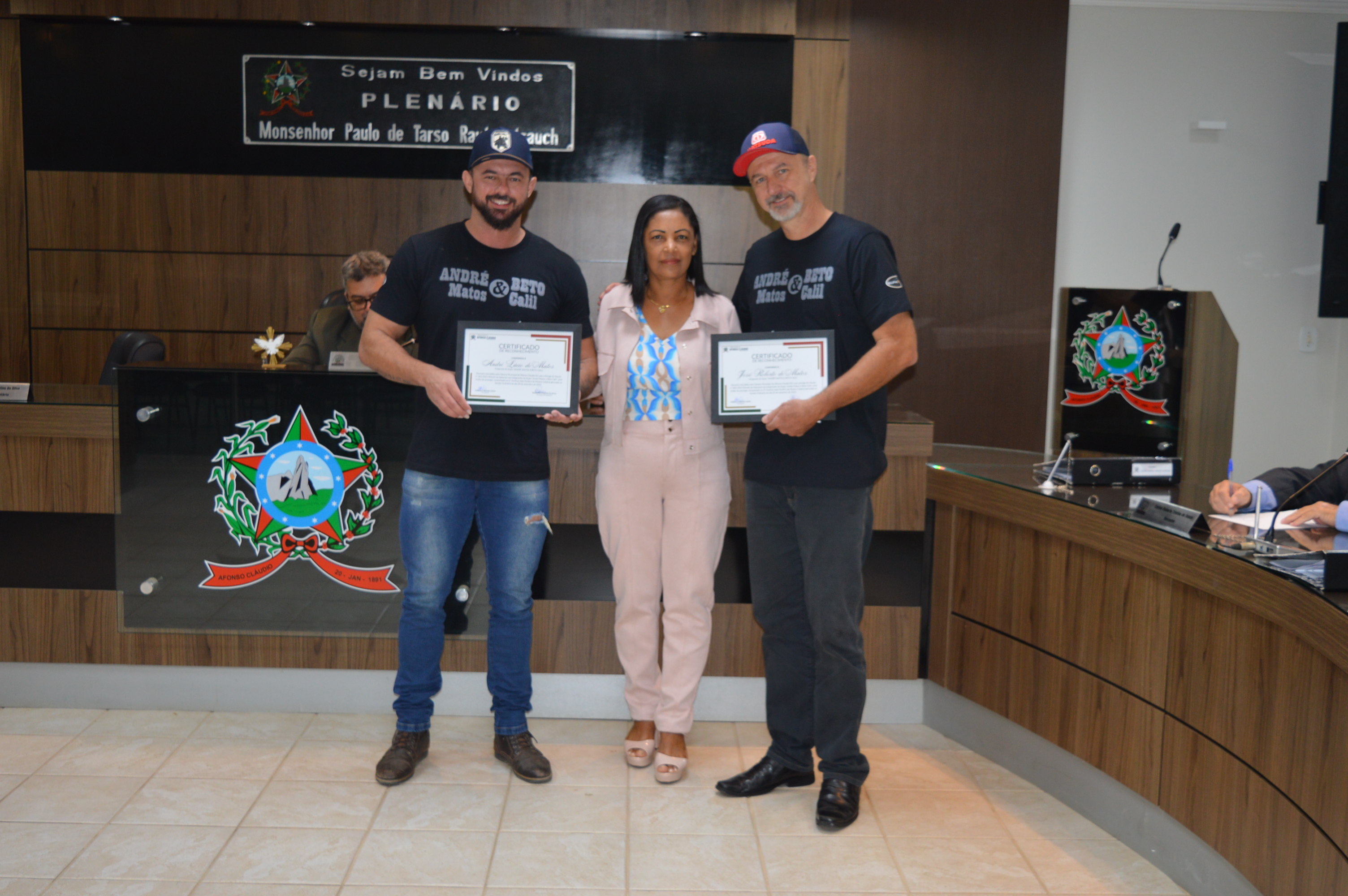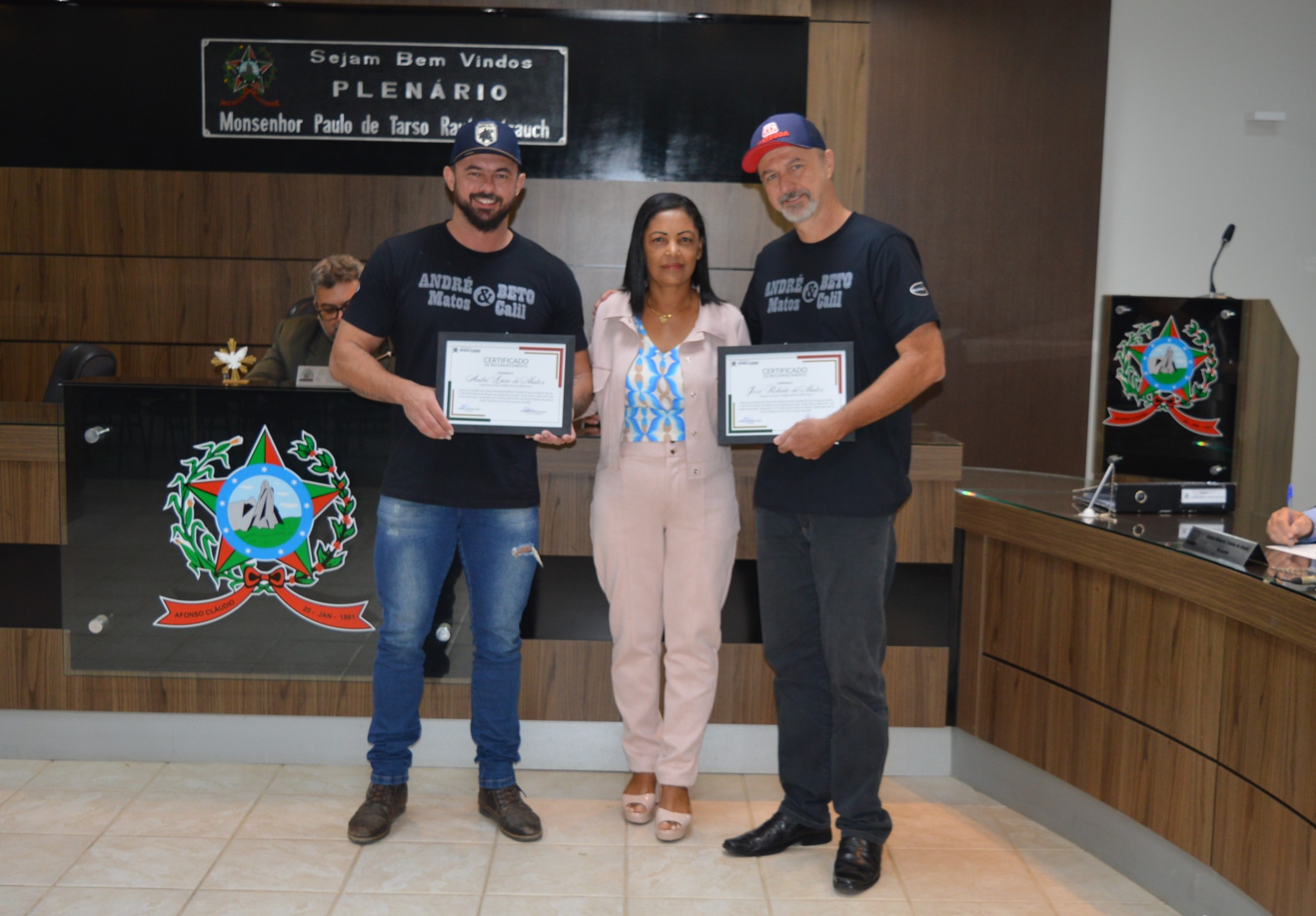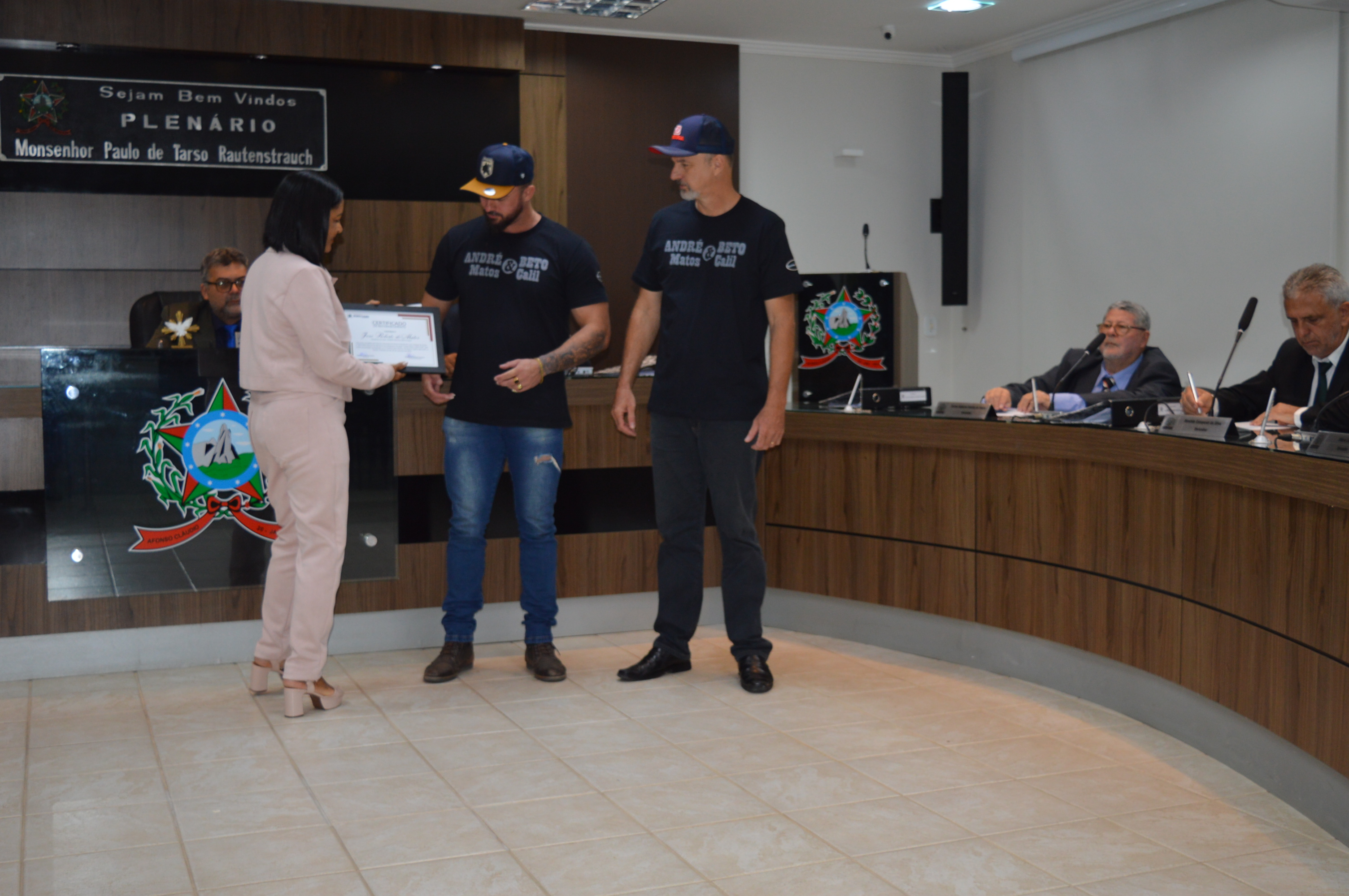 Entrega da Moção de Aplausos nº 002/2023 à dupla André Matos e Beto Calil em 10/10/2023