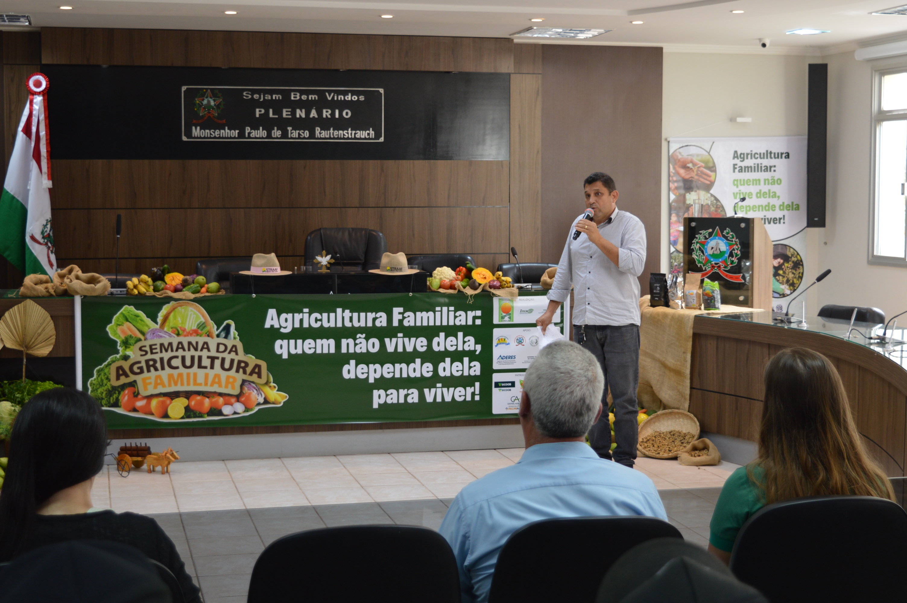 Na quarta-feira (26), aconteceu na Câmara Municipal de Afonso Cláudio, uma das ações da Semana da Agricultura Familiar, realizado pelo Sindicato dos Trabalhadores Rurais Agricultores e Agricultoras Familiares de Afonso Cláudio, Laranja da Terra e Brejetuba, juntamente com o Instituto Capixaba de Pesquisa, Assistência Técnica e Extensão Rural. Iniciativa essa, originaria da lei Nº 2.497, de 28 de março de 2023 – Projeto de Lei do Legislativo N° 004/2023, de autoria do Vereador Paulo Aparecido Thereza (PDT) – que instituiu a Semana Municipal Da Agricultura Familiar no Município De Afonso Cláudio – ES.